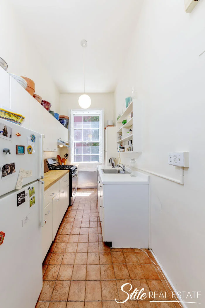 This elegant home features a spacious living room with oversized west-facing windows that flood the space with natural light throughout the day. The quiet rear bedroom offers peaceful garden views—an ideal retreat from the city's energy. Rich in pre-war charm, the apartment showcases original hardwood floors, soaring ceilings, and three decorative fireplaces - creating a warm, inviting atmosphere. Beautiful pocket doors separate the living and dining room, preserving the home’s architectural integrity and offering flexible use of space.