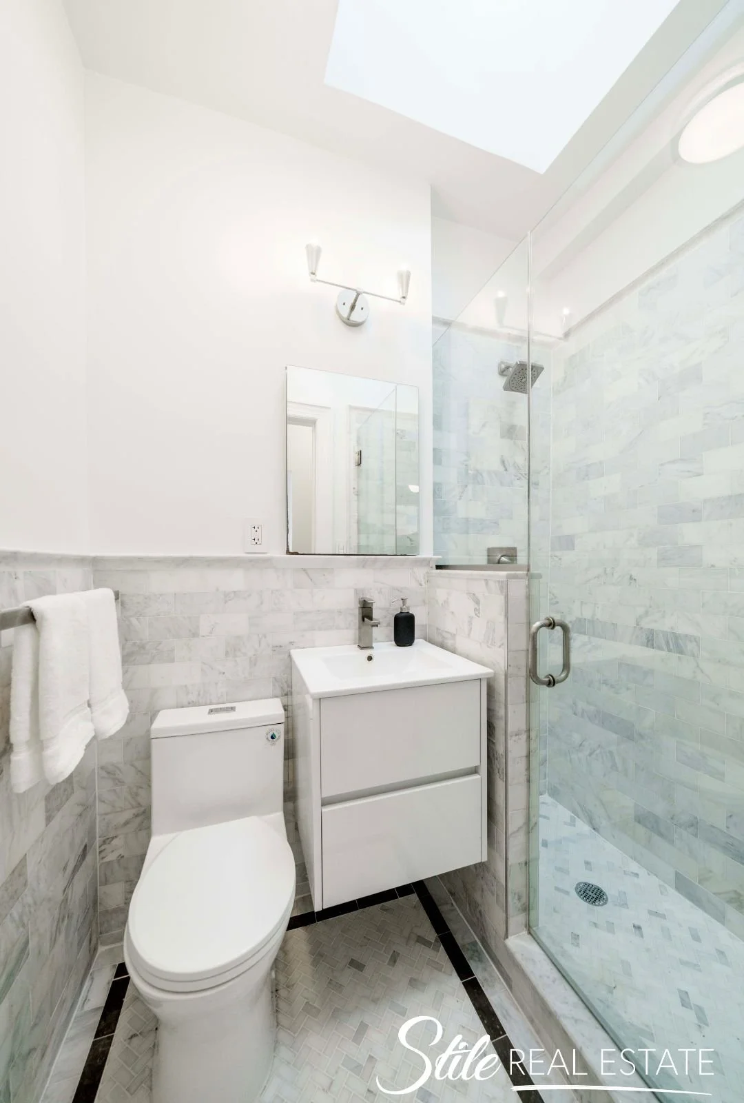 The windowed kitchen is equipped with a microwave and washer/dryer, while the bathroom boasts a skylight that fills the space with natural light. With open southern exposure, the apartment enjoys excellent sunlight throughout the day. In addition, the apartment includes undeveloped roof rights.