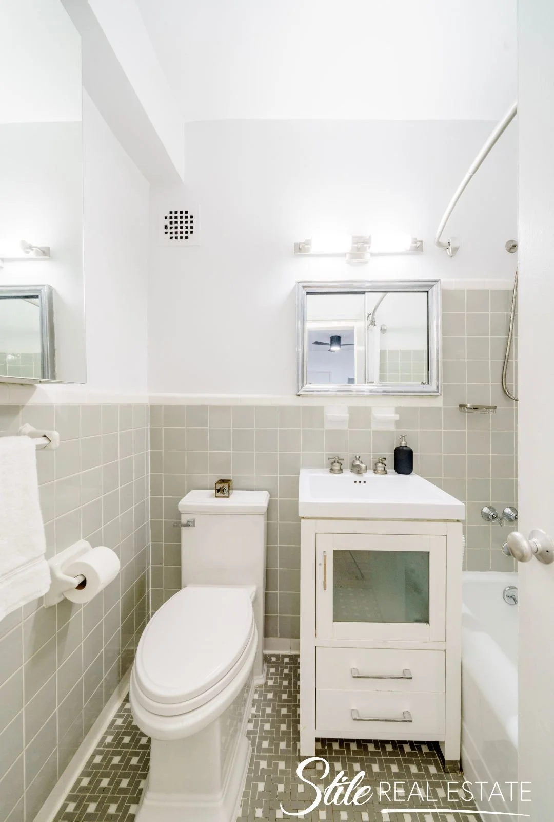The apartment features four closets—remarkably spacious for a studio—including a separate dressing area that leads to the bathroom.